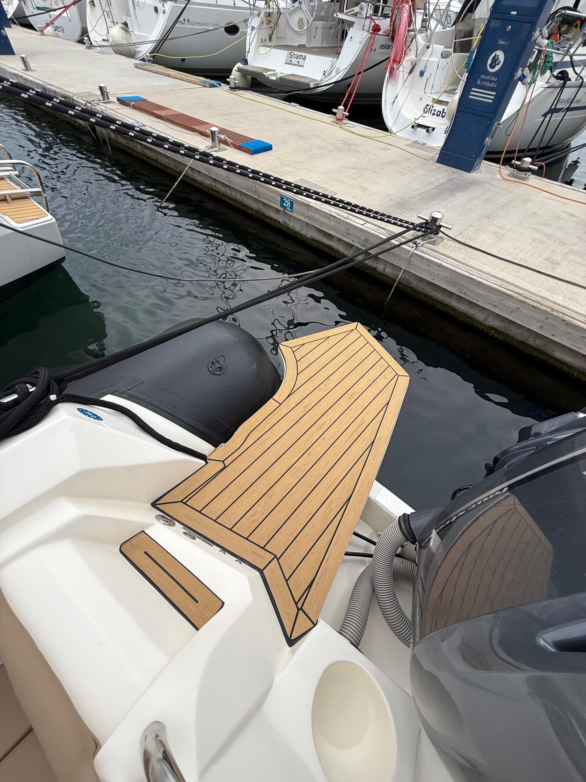 Na gumenjaku Nuova Jolly 25 uspješno smo završili profesionalnu montažu sintetičke tikovine PlasDECK, čime smo brodu osigurali dugotrajan, estetski vrhunski i protuklizan pod. Ova visokokvalitetna obloga ne samo da imitira izgled prave tikovine, već je i funkcionalno nadmašuje.